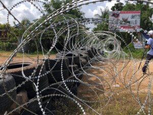 ពង្រាយ និងព័ទ្ធលួសបន្លា ធ្វើឲ្យប្រជាពលរដ្ឋដែលរស់នៅជិតតំបន់ព្រំដែន ៦គ្រួសារ បានបាត់បង់ផ្ទះសម្បែង ស្ថិតនៅក្នុងភូមិព្រៃចាន់ ឃុំអូរបីជាន់ ស្រុកអូរជ្រៅ ខេត្តបន្ទាយមានជ័យ។