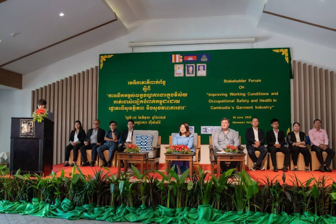 រាជធានីភ្នំពេញ៖ មន្ត្រីជំនាញនៃនាយកដ្ឋានពេទ្យការងារ និងបេឡាជាតិសន្តិសុខសង្គម(ប.ស.ស.) នៃក្រសួងការងារ និងបណ្ដុះបណ្ដាលវិជ្ជាជីវៈ បានចូលរួម ក្នុងវេទិកាភាគីពាក់ព័ន្ធស្ដីពី “ការលើកកម្ពស់លក្ខខណ្ឌការងារក្នុងវិស័យកាត់ដេរសម្លៀកបំពាក់កម្ពុជា ដោយផ្ដោតលើសុវត្ថិភាព និងសុខភាពការងារ ” ដែលប្រព្រឹត្តទៅកាលពីថ្ងៃទី០៨ ខែមិថុនា ឆ្នាំ២០២៥ នៅសណ្ឋាគារ ហ៊ីម៉ាវ៉ារី។