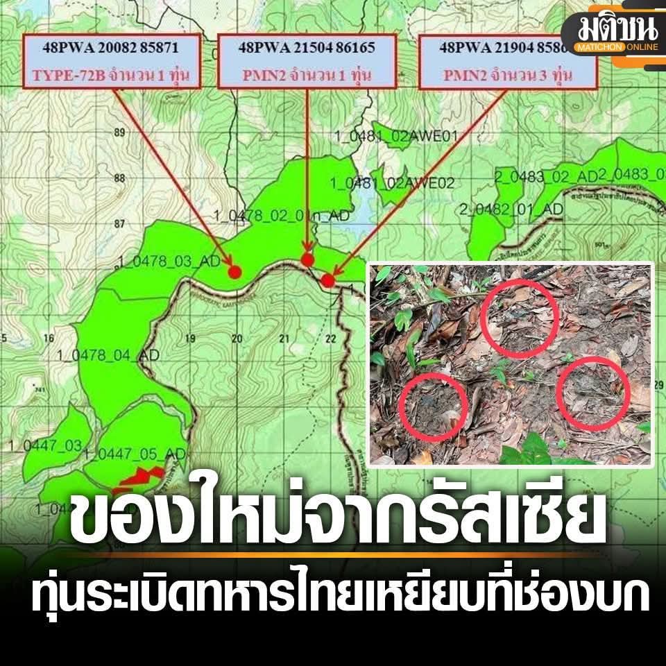 មជ្ឈមណ្ឌលសកម្មភាពកំចាត់មីនថៃ (TMAC) បានរាយការណ៍ថា គ្រាប់មីនប្រឆាំងមនុស្ស ដែលផលិតដោយរុស្សី ដែលថ្មីៗនេះបានធ្វើឱ្យទាហានថៃ ៣នាក់ រងរបួសនៅជិតច្រក Chong Bok Pass ក្នុងខេត្ត Ubon Ratchathani ត្រូវបានកប់នៅលើដីថៃ។
