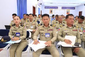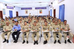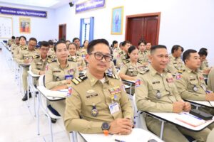លទ្ធផលការងារប្រចាំខែកក្កដា ឆ្នាំ២០២៥ និងលើកទិសដៅការងារសម្រាប់អនុវត្តបន្ត ដែលមានកងកម្លាំងចូលរួមប្រមាណជាង២០០ នាក់ នៅសាលប្រជុំស្នងការដ្ឋាននគរបាលខេត្ត រសៀលថ្ងៃទី ១៦ ខែ កក្កដា ឆ្នាំ២០២៥នេះ។
