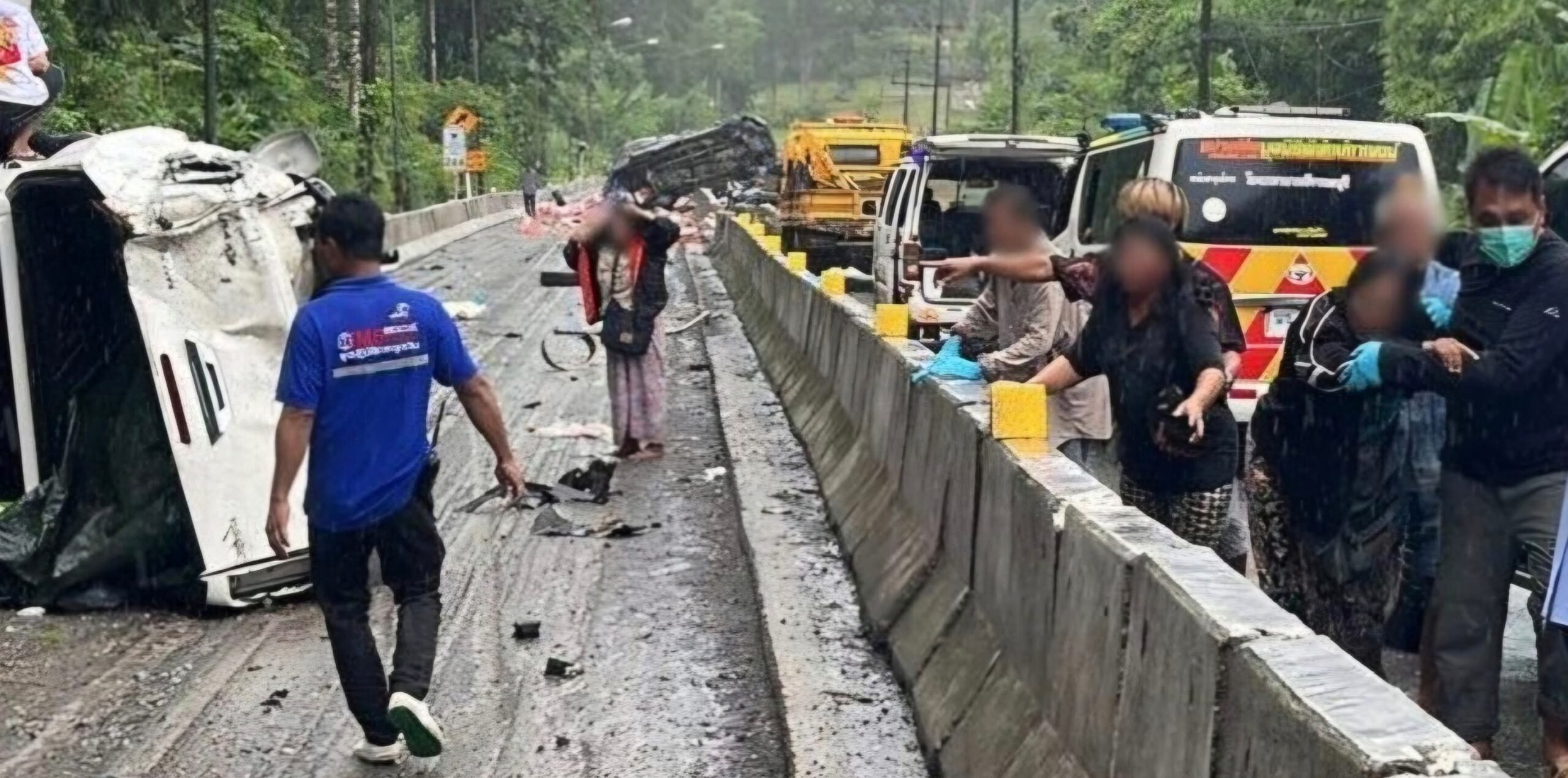 បច្ចុប្បន្នមន្ត្រីជំនាញកំពុងចល័តកម្លាំងទៅជួយអ្នករបួស។ ក្នុងគ្រោះថ្នាក់នេះ បណ្តាលឲ្យរថយន្តភីកអាប់៤គ្រឿងបុក។ ខ្លះត្រូវបានបោះចោលលើស្មាផ្លូវ ចំណែកអ្នកខ្លះទៀតត្រូវបានដាក់នៅលើរបាំងបេតុងដែលប្រើសម្រាប់បំបែកគន្លងចរាចរណ៍។
