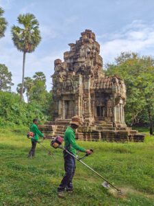 សៀមរាប៖ ក្រុមការងារសម្អាតបរិស្ថាននៅតំបន់រមណីយដ្ឋានអង្គរ បានចុះកាត់ស្មៅនៅបរិវេណខាងមុខប្រាសាទអង្គរវត្ត ដែលត្រូវសម្អាតប្រចាំថ្ងៃ ដោយចល័តពីទីតាំងមួយទៅមួយ មានប្រាសាទអង្គរវត្ត ក្រុងអង្គរធំ និងស្រះស្រង់ជាដើម។