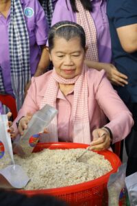 ឆ្នាំ២០២៥ សម្តេចកិត្តិសង្គហបណ្ឌិត ម៉ែន សំអន ប្រធានគណៈកម្មាធិការកណ្តាលសមាគមនារីកម្ពុជា ដើម្បីសន្តិភាពនិងអភិវឌ្ឍន៍ បានអញ្ជើញចូលរួមក្នុងពិធីដាល់អំបុកមហាគ្រួសារខ្មែរ ស្ថិតក្នុងស្រុកស្វាយជ្រំ ខេត្តស្វាយរៀង ។