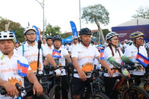 សៀមរាប: ក្រសួងទេសចរណ៍ សហការជាមួយរដ្ឋបាលខេត្តសៀមរាប បានរៀបចំព្រឹត្តិការណ៍ជិះកង់ផ្សារភ្ជាប់នឹងសកម្មភាពមនុស្សធម៌ ក្រោមប្រធានបទ « រួមគ្នាដើម្បីកម្ពុជា ក្នុងរដូវកាលសាមគ្គី» បានទាក់ទាញបងប្អូនប្រជាពលរដ្ឋ ទេសចរជាតិ និងអន្តរជាតិប្រមាណ២ពាន់នាក់ មកចូលរួមដើម្បីបង្ហាញអបអសាទរទិវាសន្តិភាពកម្ពុជា និង