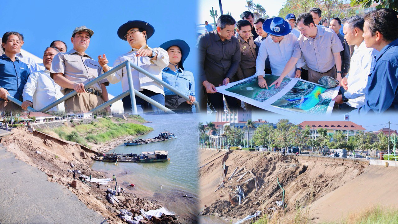 កំពង់ចាម: ឯកឧត្តម ថោ ជេដ្ឋា រដ្ឋមន្ត្រីក្រសួងធនធានទឹកនិងឧតុនិយម និងឯកឧត្តម អ៊ុន ចាន់ដា អភិបាលខេត្តកំពង់ចាម នាព្រឹកថ្ងៃទី១០ ខែកុម្ភៈ ឆ្នាំ២០២៦នេះ បានដឹកនាំក្រុមការងារអញ្ជើញចុះពិនិត្យបច្ចេកទេសទប់ស្កាត់បណ្ដោះអាសន្ន ចំពោះការបាក់ស្រុតច្រាំងទន្លេមេគង្គ ស្ថិតនៅក្នុងក្រុងកំពង់ចាម ដេីម្បីសាងសង់សំណង់ច្រាំងទន្លេនោះឡើងវិញ។